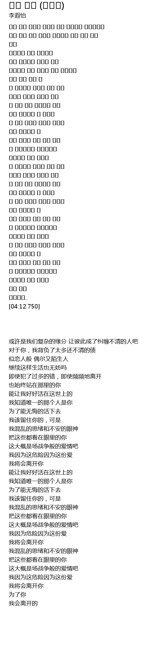 | [03:50.670] | 我将会离开你 |