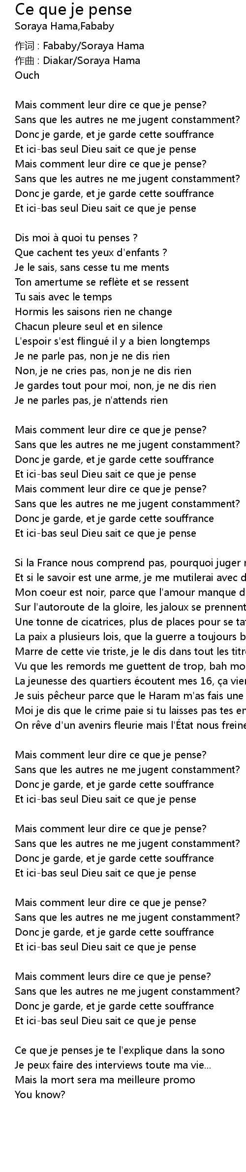 | 歌曲 | Ce que je pense |