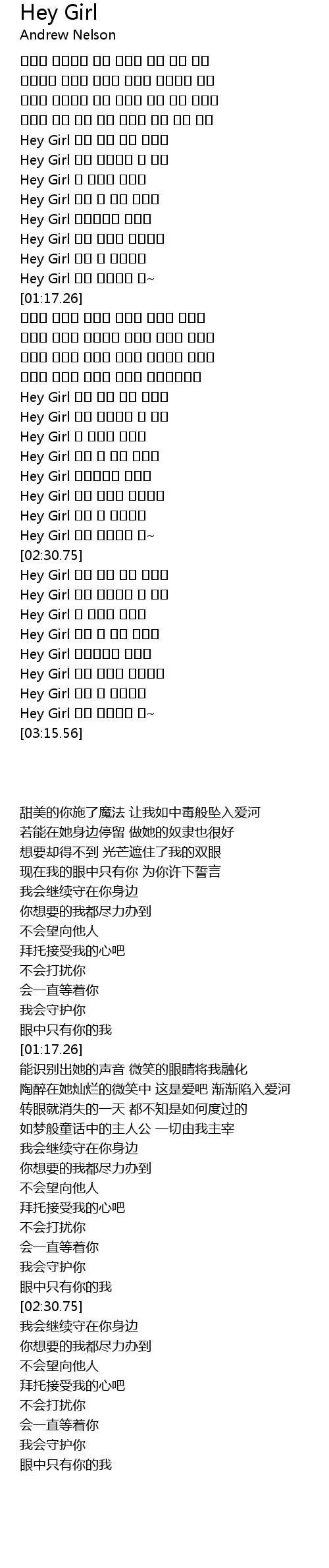 | [02:59.05] | Hey Girl 귀찮게하지 않을께 |