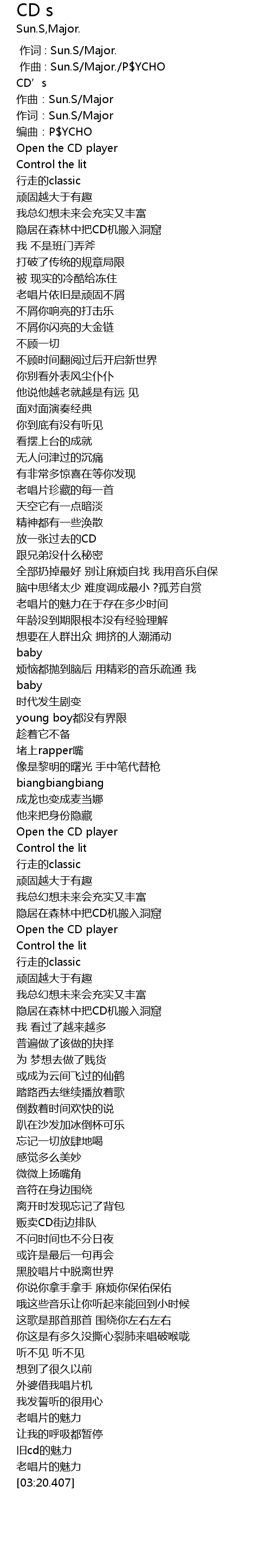 | [00:00.000] | 作词 : Sun.S/Major. |