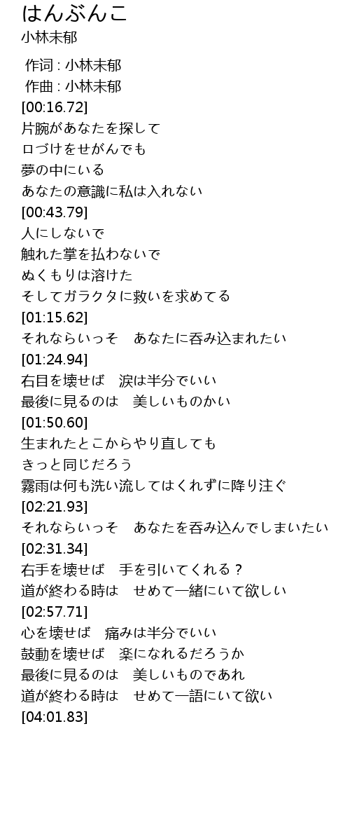 | [00:00.000] | 作词 : 小林未郁 |
