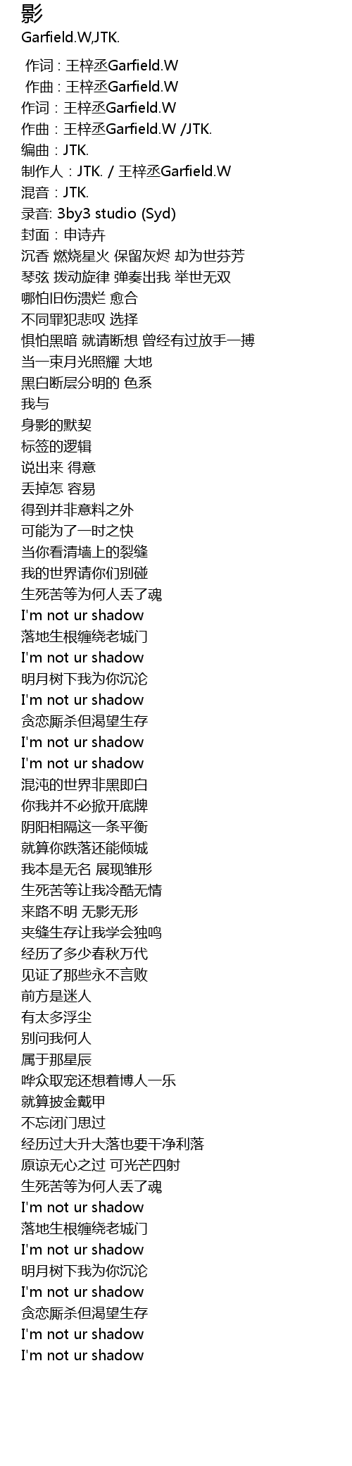 | [00:15.197] | zuo qu: wang zi cheng Garfield. W JTK. |