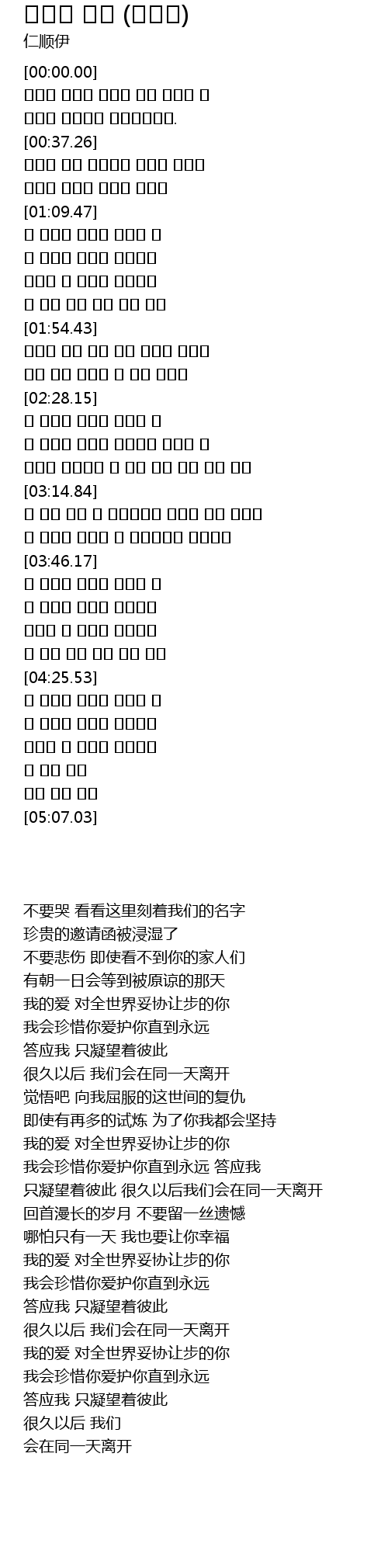 | [00:09.48] | 울지마 여기에 새겨진 우리 이름을 봐 |