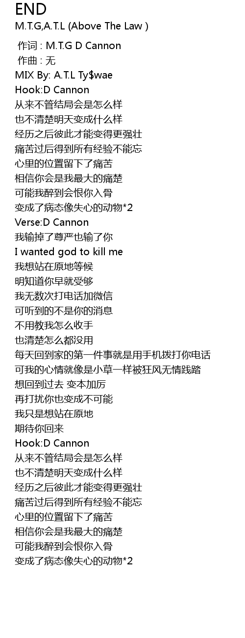 | [00:00.000] | 作词 : M.T.G D Cannon |