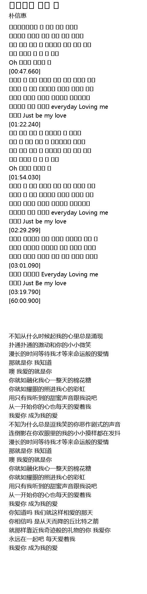| [02:18.619] | 처음부터 그대 마음도 everyday Loving me |