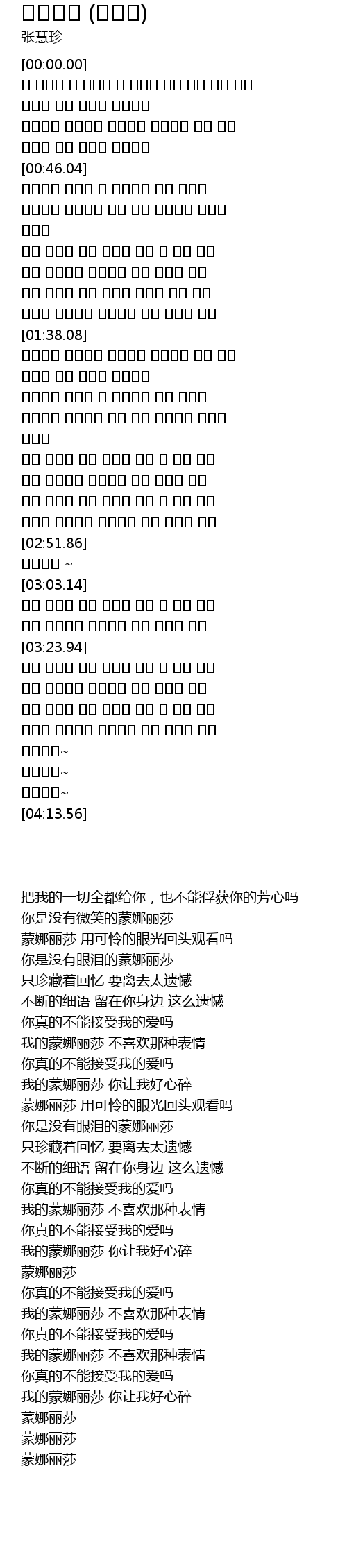 | [03:51.30] | 我的蒙娜丽莎 你让我好心碎 |