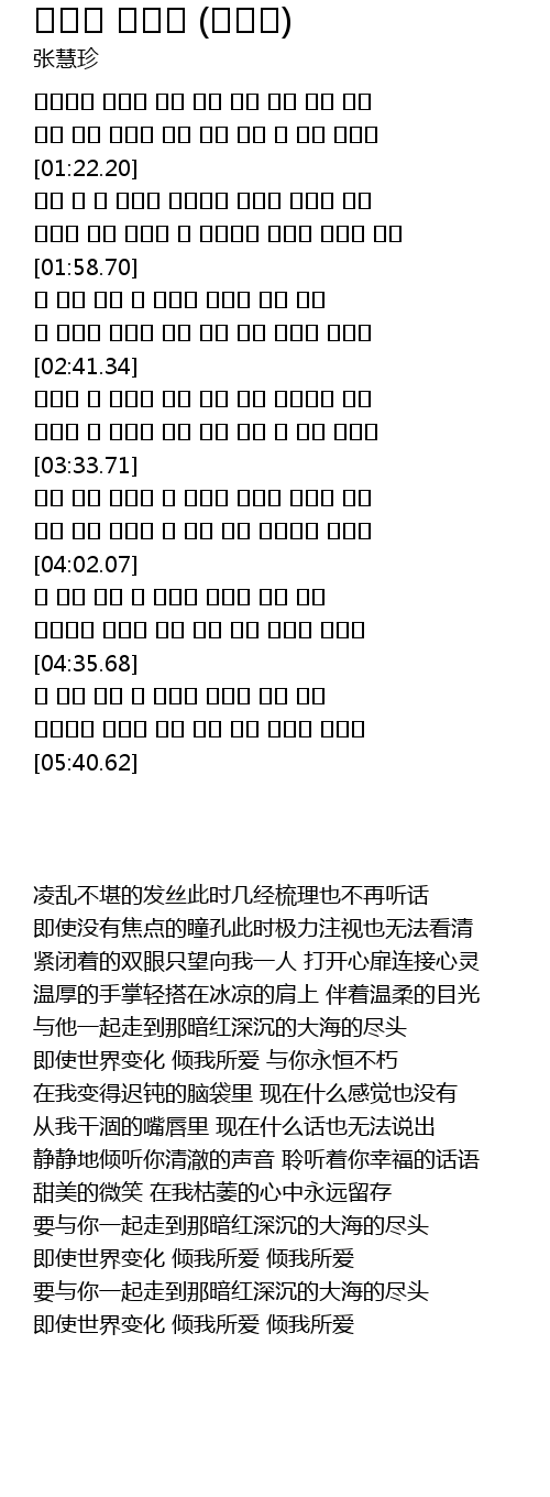 | [05:09.79] | 即使世界变化 倾我所爱 倾我所爱 |