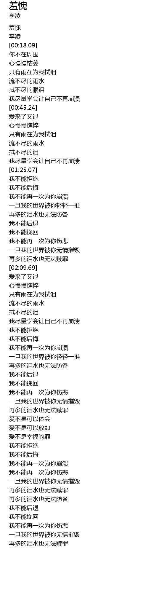 | [00:14.05] | 羞愧 |