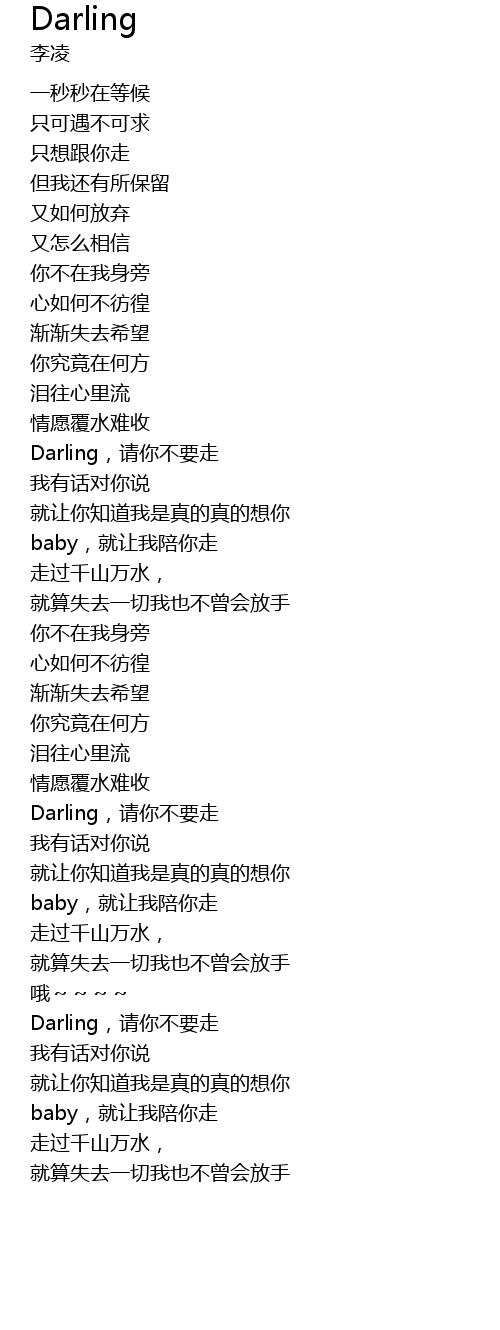 | [03:10.950] | Darling, qing ni bu yao zou |