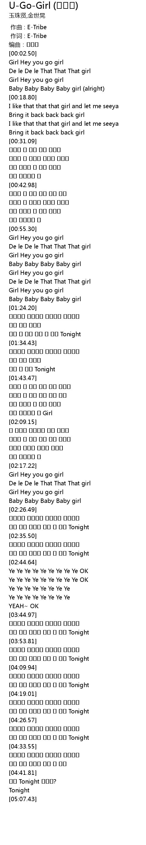 | [00:00.00] | zuò qǔ : ETribe |