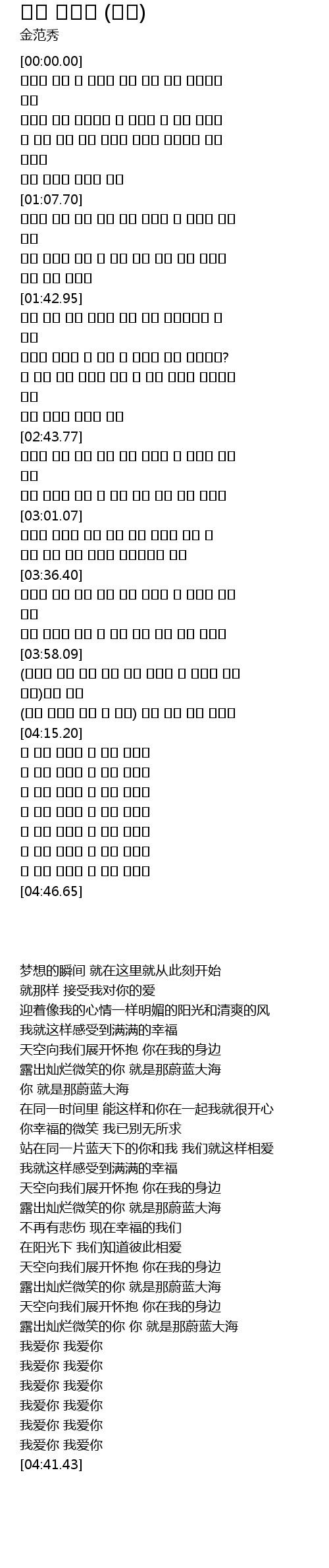 | [04:41.43] | 난 너를 사랑해 난 너를 사랑해 |