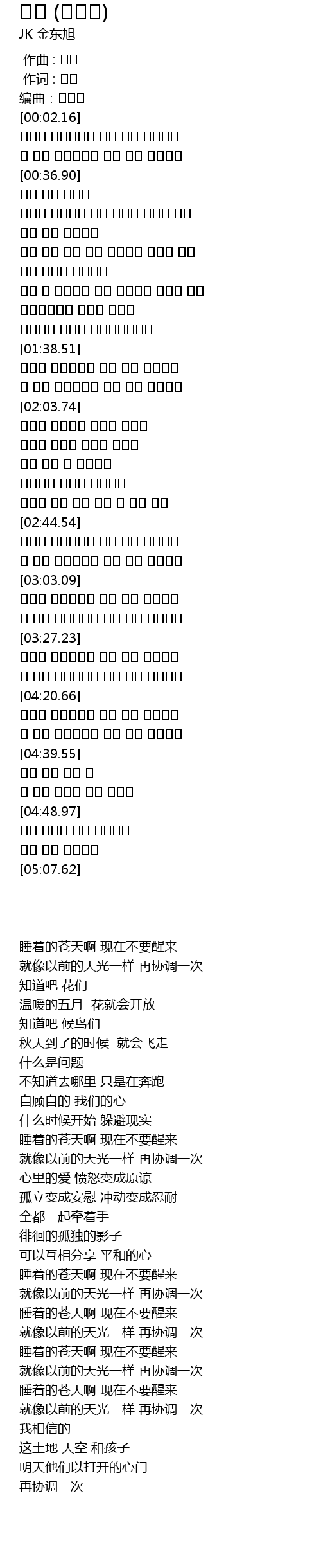 | [01:38.90] | 잠자는 하늘님이여 이제 그만 일어나요 |