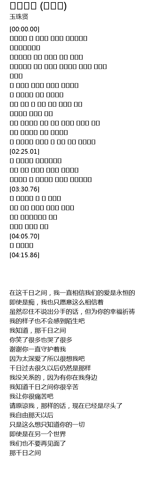 | [01:46.04] | 너무 사랑했던 나를 보고 싶겠죠 천일이 훨씬 |
