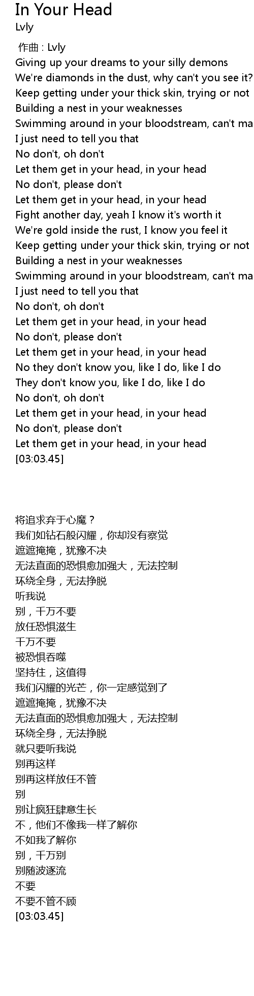 | [02:52.25] | Let them get in your head, in your head |
