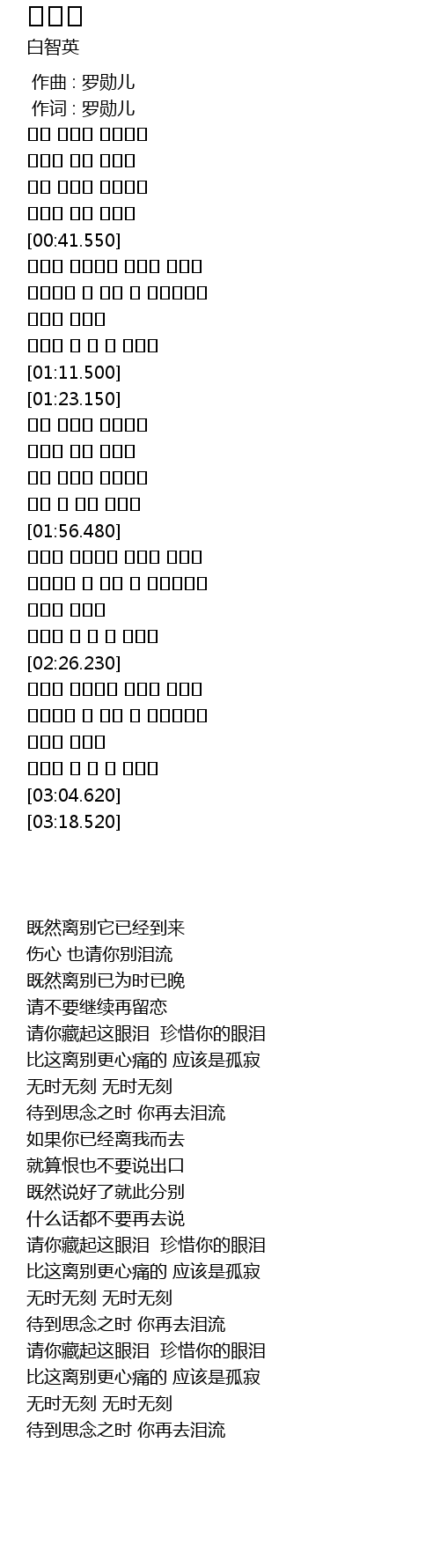 | [01:58.400] | 请你藏起这眼泪 珍惜你的眼泪 |