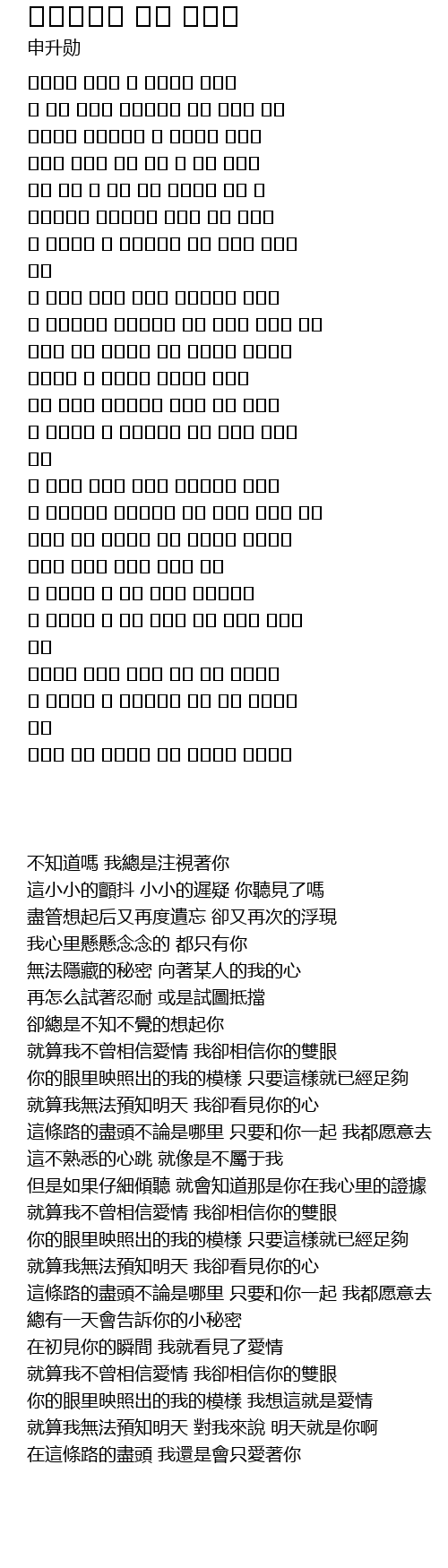 | [04:02.250] | 在這條路的盡頭 我還是會只愛著你 |