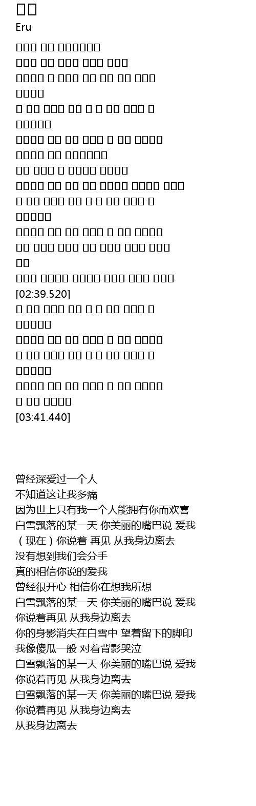 | [02:40.410] | 白雪飘落的某一天 你美丽的嘴巴说 爱我 |