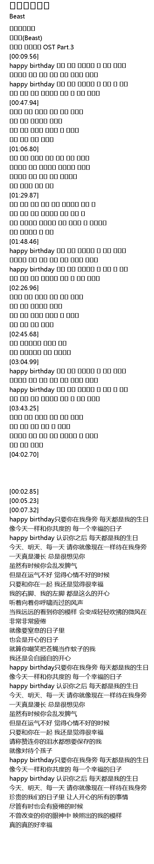 | [00:02.85] | 해피버스데이 |