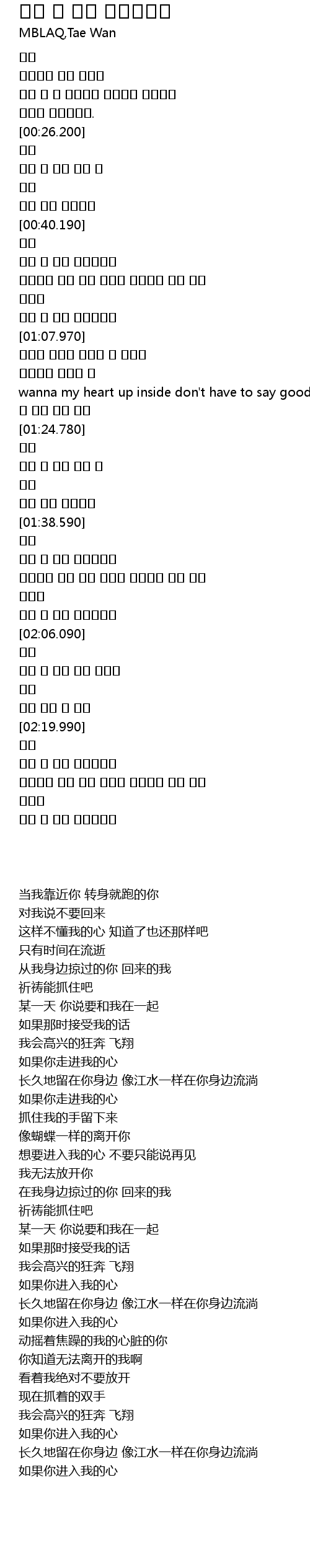 | [01:17.930] | wanna my heart up inside don't have to say goodbyebye |