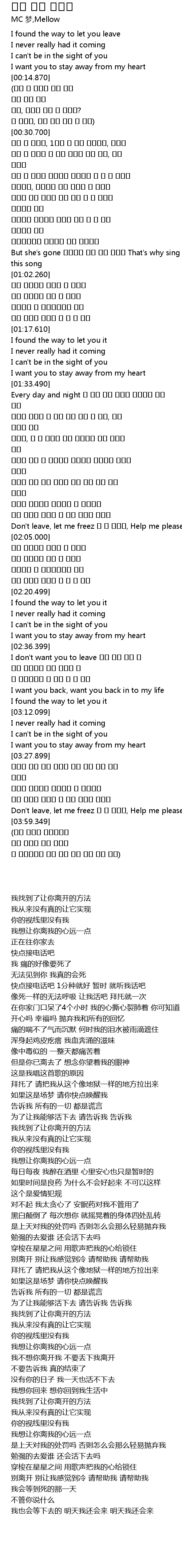 | [02:01.690] | Don't leave, let me freez 날 좀 도와줘, Help me please |