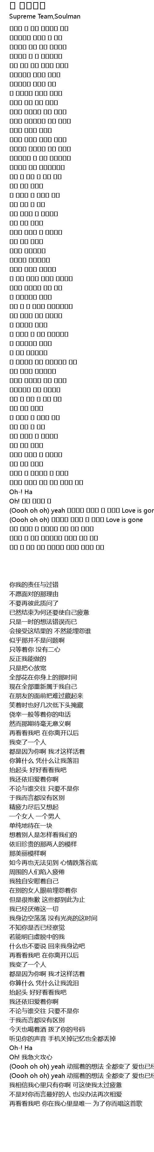 | [02:41.270] | (Oooh oh oh) yeah 흔들리는 머릿속 다 변했지 Love is gone |