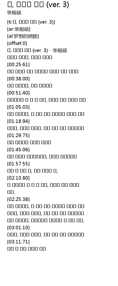 | [00:00.79] | 꿈, 날개를 달다 (ver. 3) - 张根硕 |