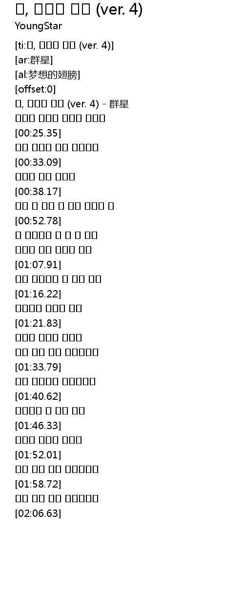 | [00:00.40] | 꿈, 날개를 달다 (ver. 4) - 群星 |