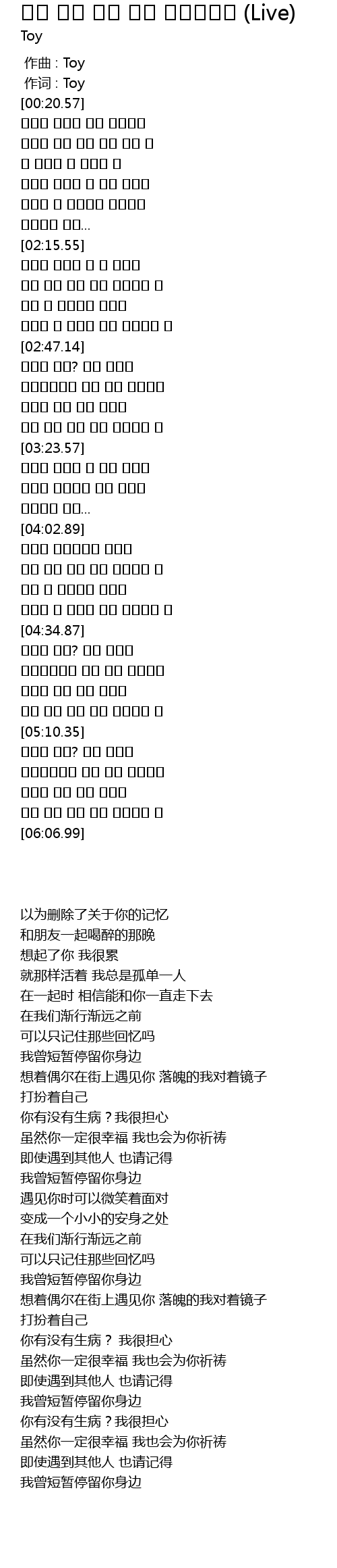 내가 너의 곁에 잠시 살았다는걸 (Live) 歌词