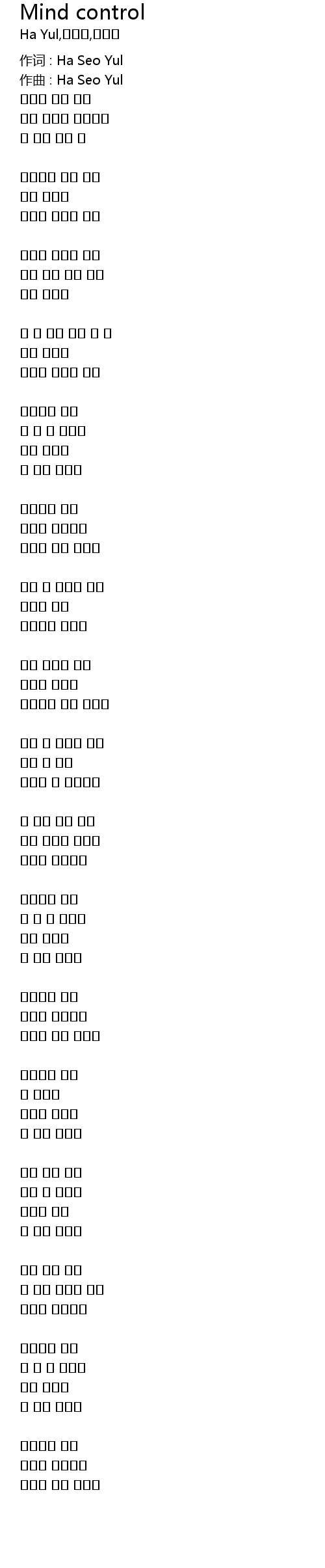作词 : Ha Seo Yul |