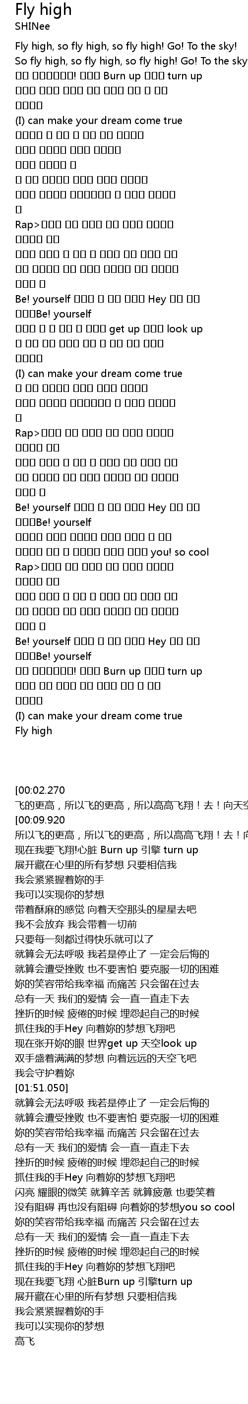 | [03:07.680] | 이젠 날아보는거야! 심장을 Burn up 엔진을 turn up |