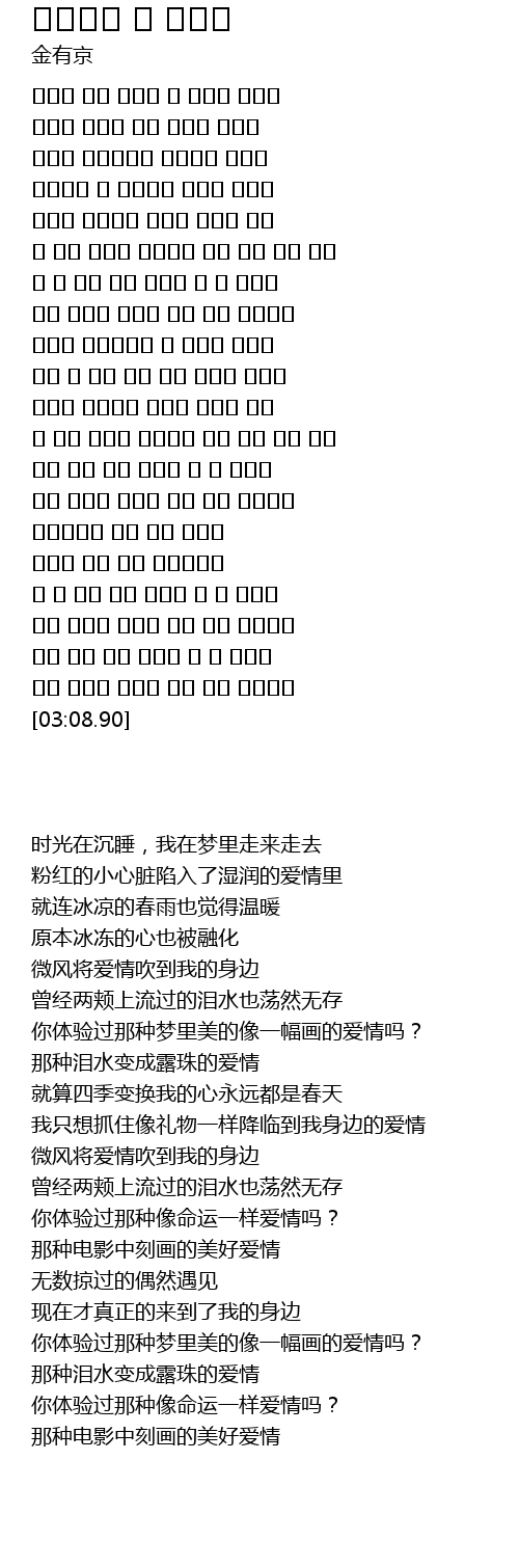 | [02:35.23] | 꿈 속 그림 같은 사랑해 본 적 있나요 |