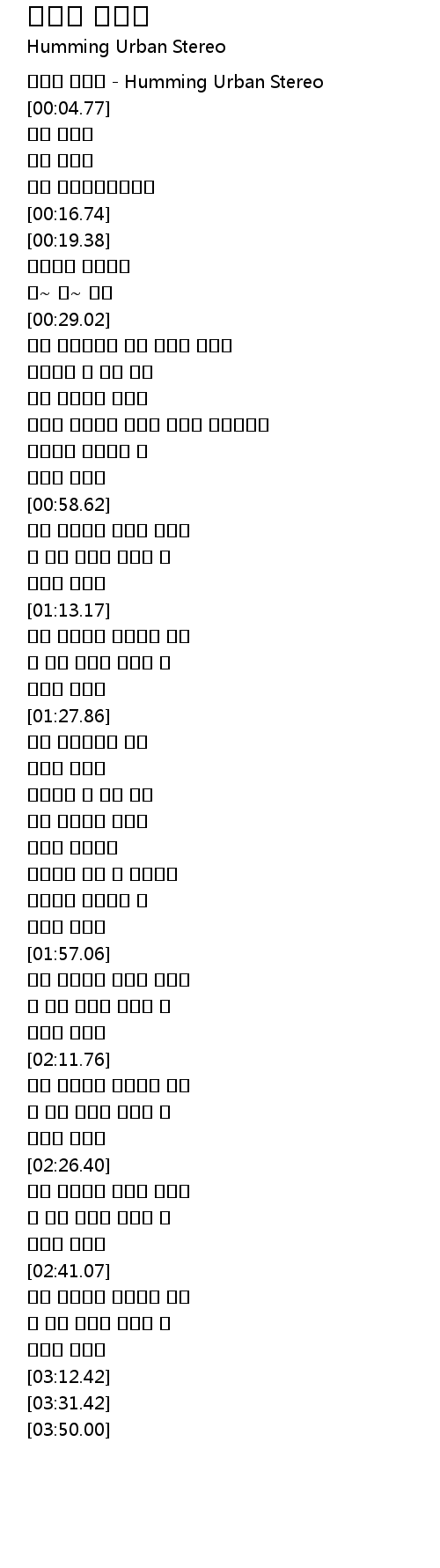 | [00:01.79] | 샐러드 기념일 - Humming Urban Stereo |