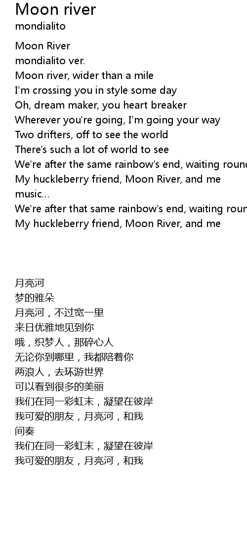 | [00:12.000] | Moon river, wider than a mile |