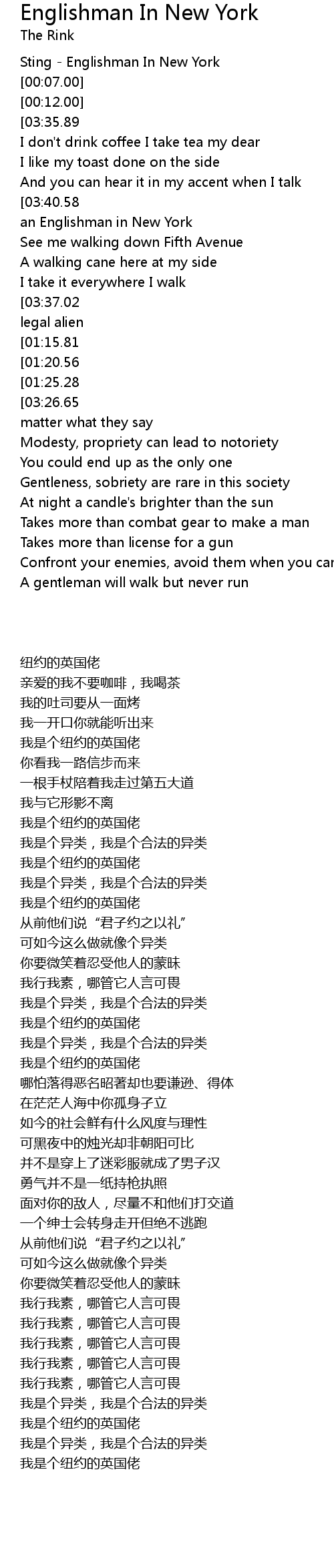 I'm an Englishman in New York |