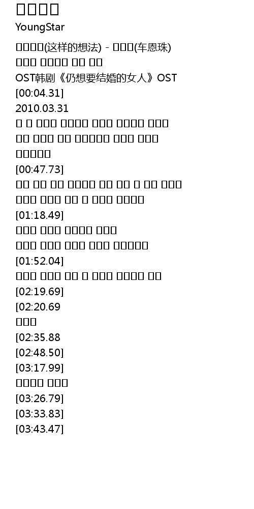 | [00:00.00] | 이런생각(这样的想法) - 차은주(车恩珠) |
