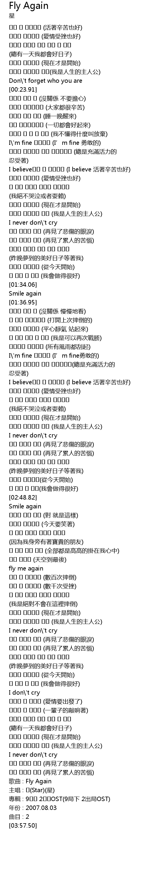 | [02:58.64] | 더 높이 날아 올라 (全部都是高高的掛在我心中) |