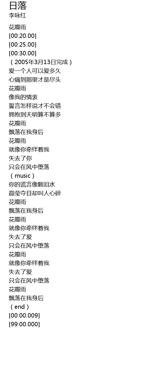 | [00:35.00] | 2005 nián 3 yuè 13 rì wán chéng |