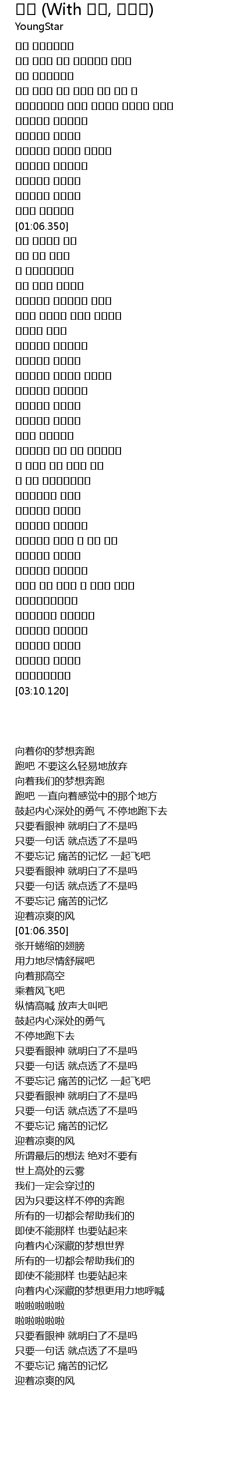 | [01:47.550] | 不要忘记 痛苦的记忆 一起飞吧 |