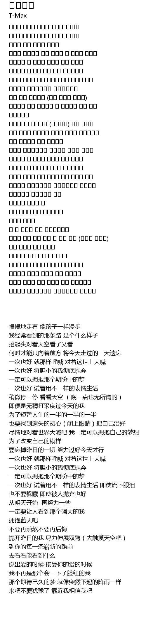 | [00:33.54] | 한번쯤은 꼭 소리쳐 세상을 향해 소리쳐 |