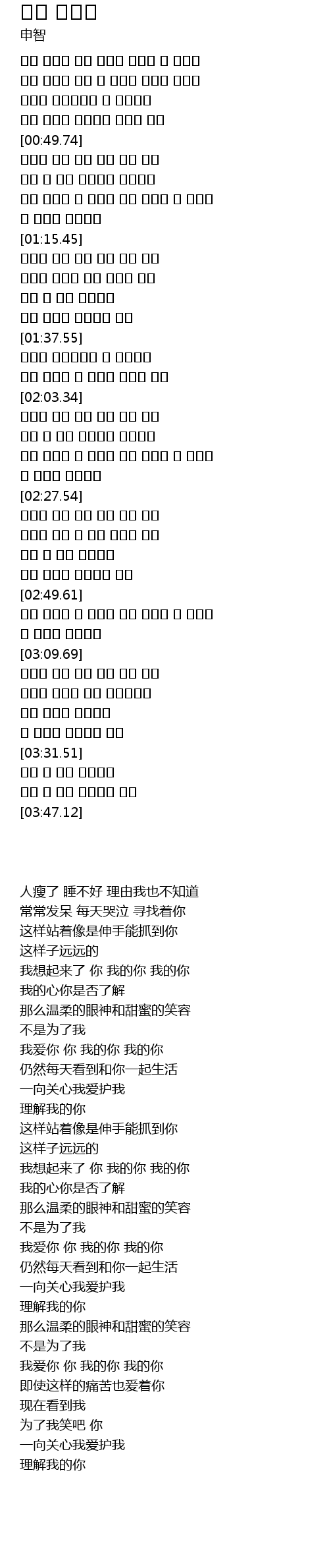 | [03:09.98] | 사랑해 그대 나의 그대 나의 그대 |