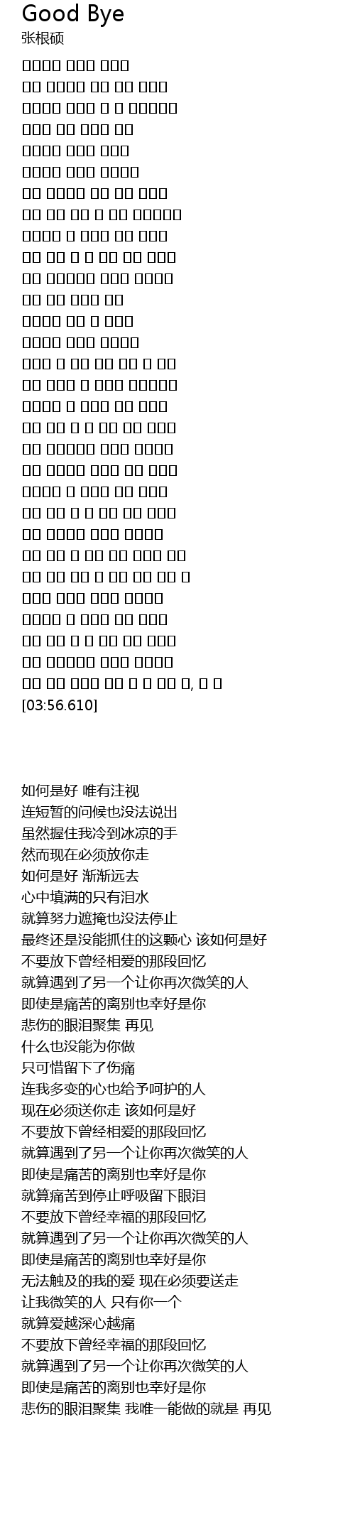 | [03:47.130] | 슬픈 눈물 모아서 내가 할 수 있는 일, 안 녕 |