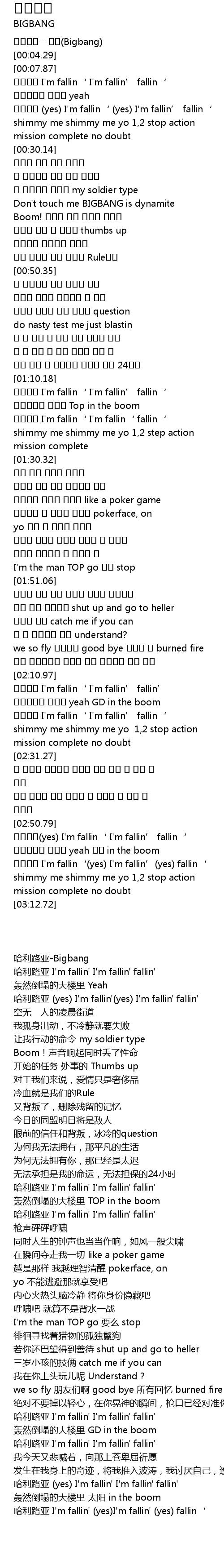| [00:02.05] | 哈利路亚-Bigbang |