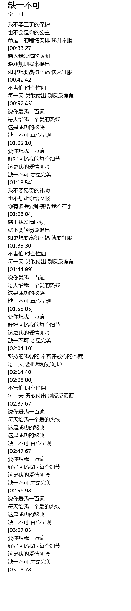 | [03:04.83] | 缺一不可 真心呈现 |