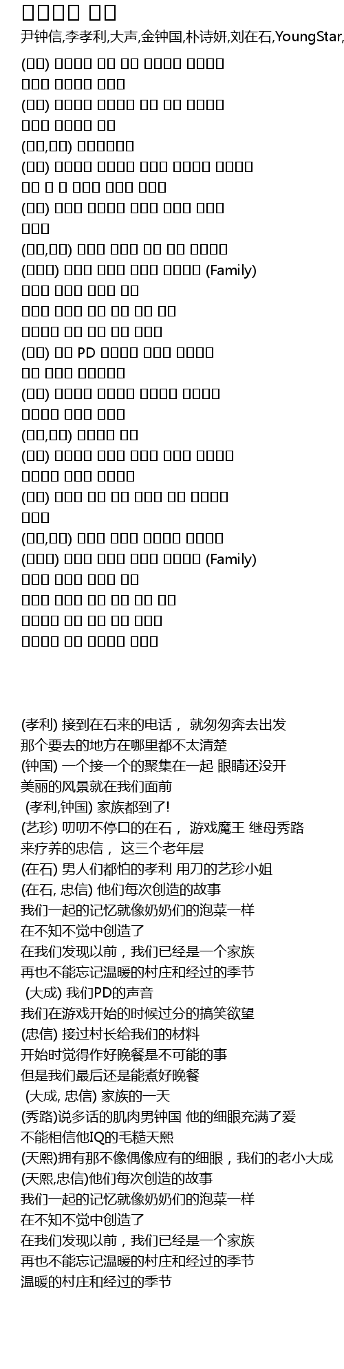 | [01:13.36] | (패밀리) 어느새 추억은 할머니 김치처럼 (Family) |