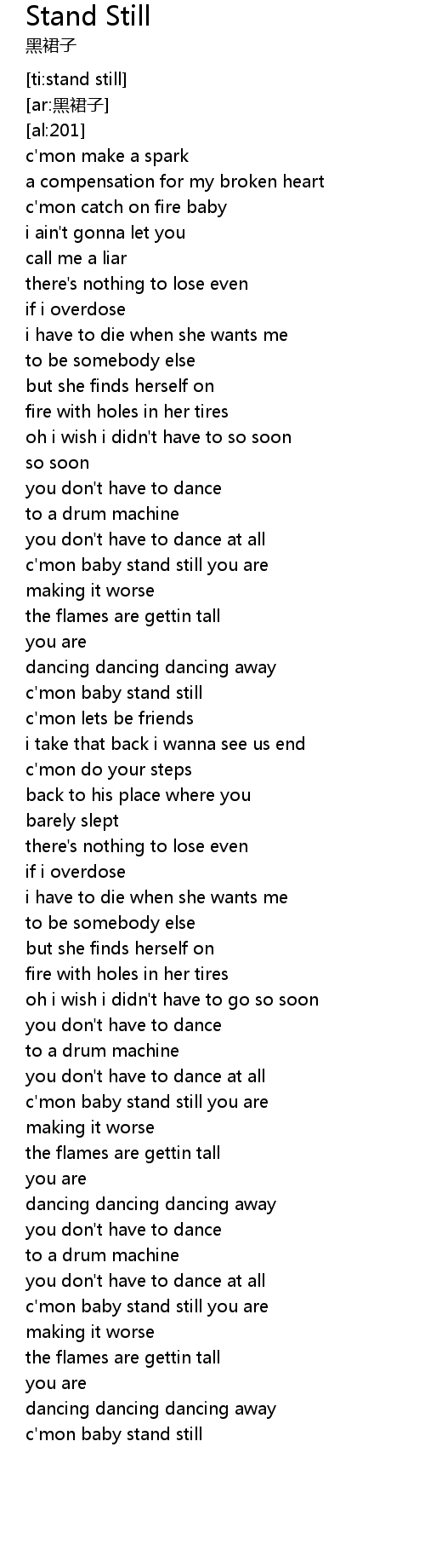 | [03:16.94] | c'mon baby stand still |