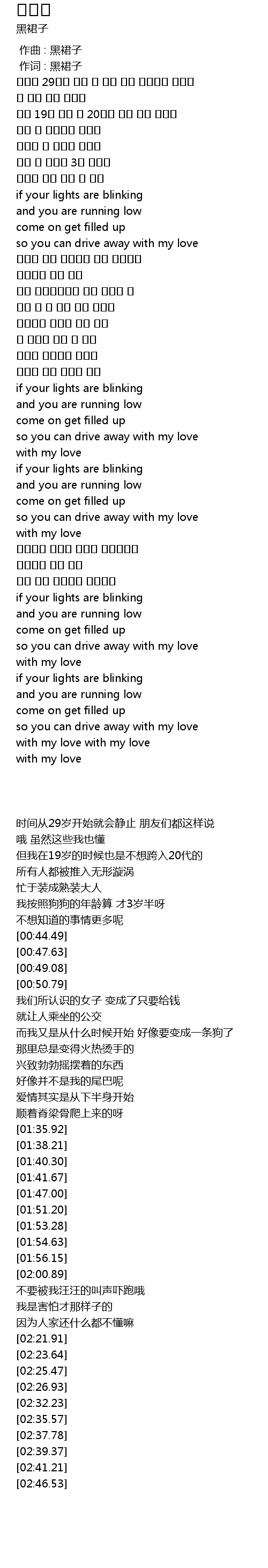 | [00:01.00] | 作词 : 黑裙子 |