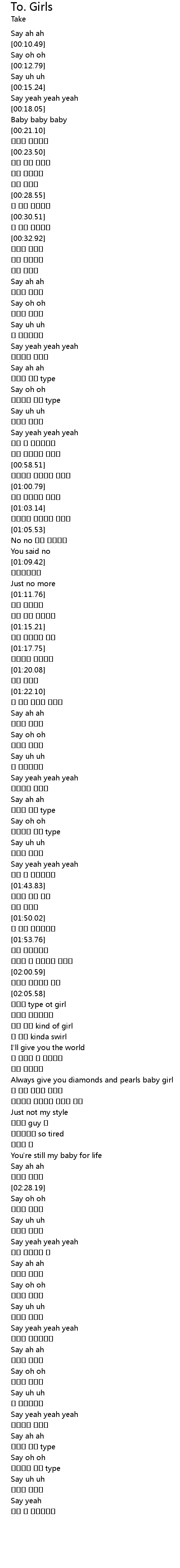 | [02:15.12] | Always give you diamonds and pearls baby girl |