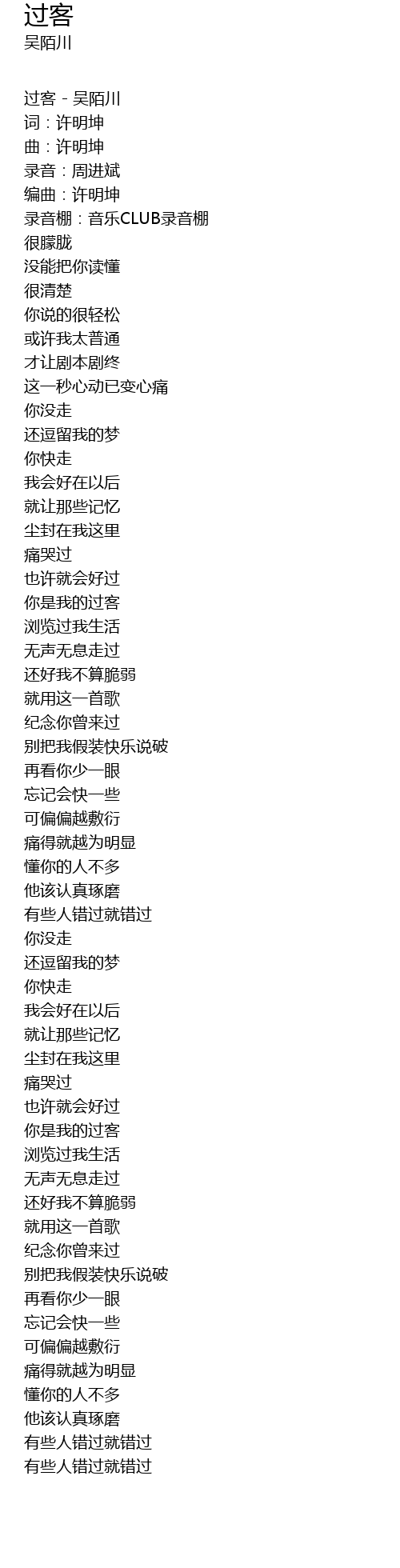 | 过客 - 吴陌川 | |