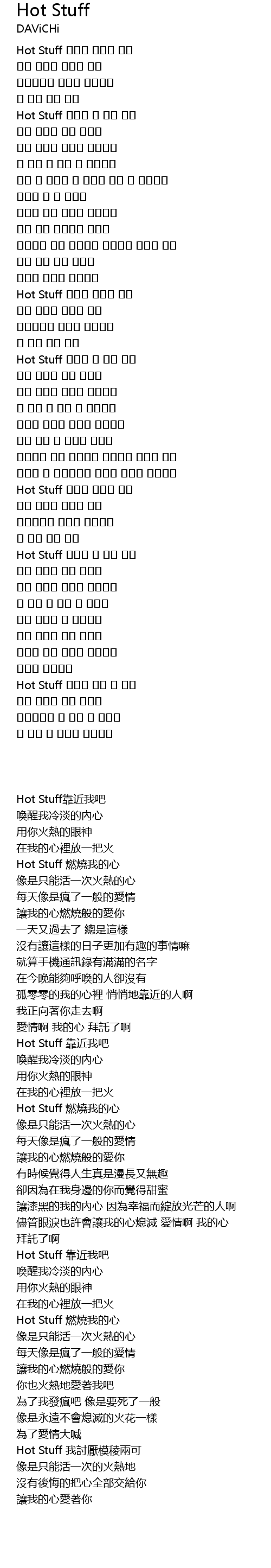 | [03:18.190] | Hot Stuff 미지근 한건 난 싫어 |