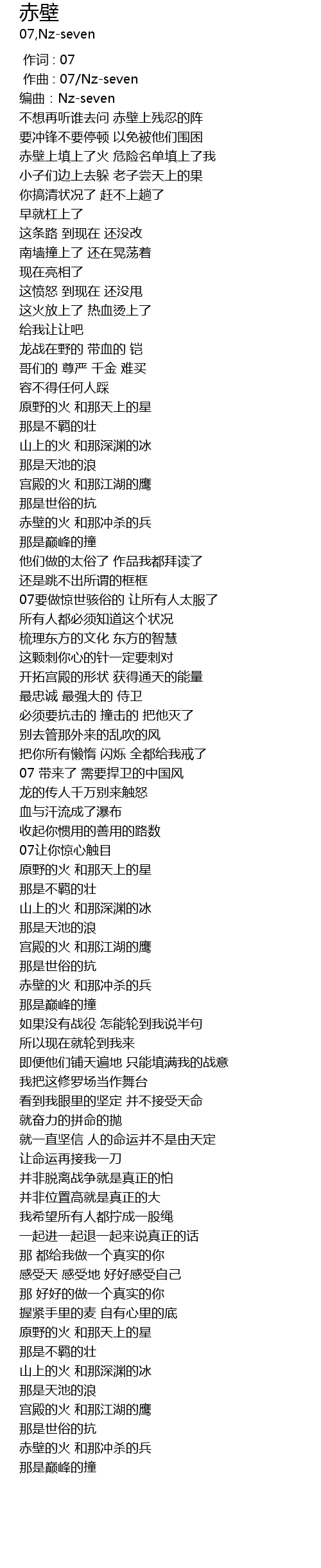 | [00:24.280] | 赤壁上填上了火 危险名单填上了我 |